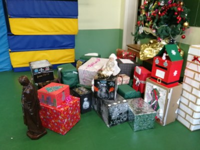 Ce 15 décembre, tous les colis pour l'opération Calendrier de l'Avent inversé de la Bulle inattendue ont été déposés par les délégués de chaque classe de 6° et 5° au pied du sapin des Bleuets ... et c'est bien plus d'un colis par classe qui a été constitué et emballé !!