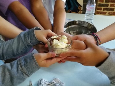 Les 6° ont profité sous un grand soleil d'une journée d'intégration. En matinée, ils ont découvert à la ferme un élevage laitier et fabriqué du beurre. L'après-midi, ils se sont rendus à Asnapio pour participer à des ateliers : alimentation à la préhistoire, fouilles archéologiques et vie gallo-romaine... un beau programme qui a permis de créer des liens et de poser des bases de travail.