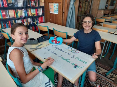 Tous les élèves de l'école et de 6°/5° se sont rassemblés à l'église Ste Catherine porteurs des valeurs qui vont les animer tout au long de cette année portée par les JO ...tous sportifs de Dieu ...