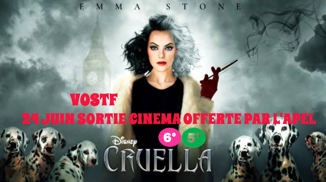 Pour bien finir l'année, l'APEL a offert une sortie cinéma aux 6°/5° pour la projection en VO anglaise de Cruella.
