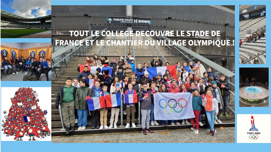 En novembre , tous les élèves du collège ont pu découvrir le chantier du village olympique et visiter le stade de France ... en route pour Paris 2024 !
