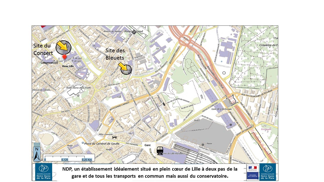 Le lycée Notre Dame de la Paix se situe au cœur du centre historique et culturel de Lille, dans le quartier le plus prisé et le plus typique, où se mêlent le charme, le calme, et la vie étudiante.